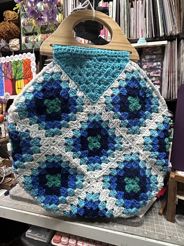 Introducing our Gorgeous Granny Square Bag, a must-have accessory that perfectly combines style and functionality. Measuring an impressive 17” x 21” high (including the handle), this bag is spacious enough for daily essentials, making it ideal for shopping, outings, or everyday use. Its charming granny square pattern is not only visually appealing but also adds a touch of nostalgic elegance to your ensemble.