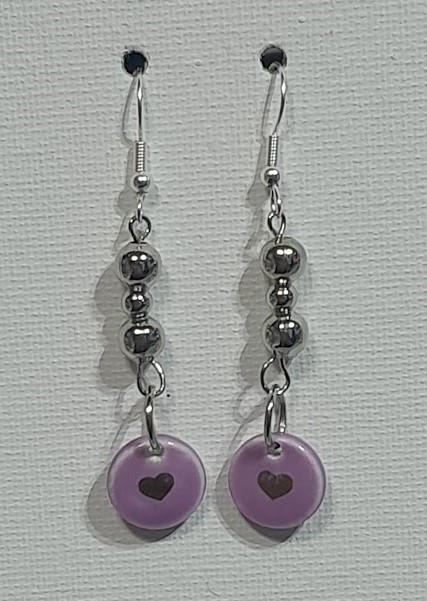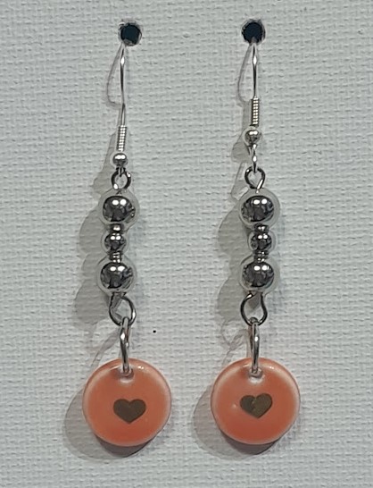 Metal Round Bead with Heart Earrings